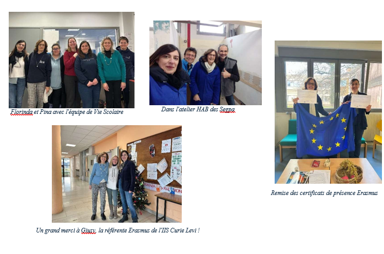 La première semaine de décembre, nous avons eu la chance d’accueillir au collège Pina et Florinda deux collègues de l’IIS Curie Levi de Turin en Italie. Grâce au programme Erasmus, ces deux collègues, respectivement de « soutien » et de droit/économie politique ont pu observer pendant 5 jours, différents cours et dispositifs propres à notre système éducatif ou à notre établissement.